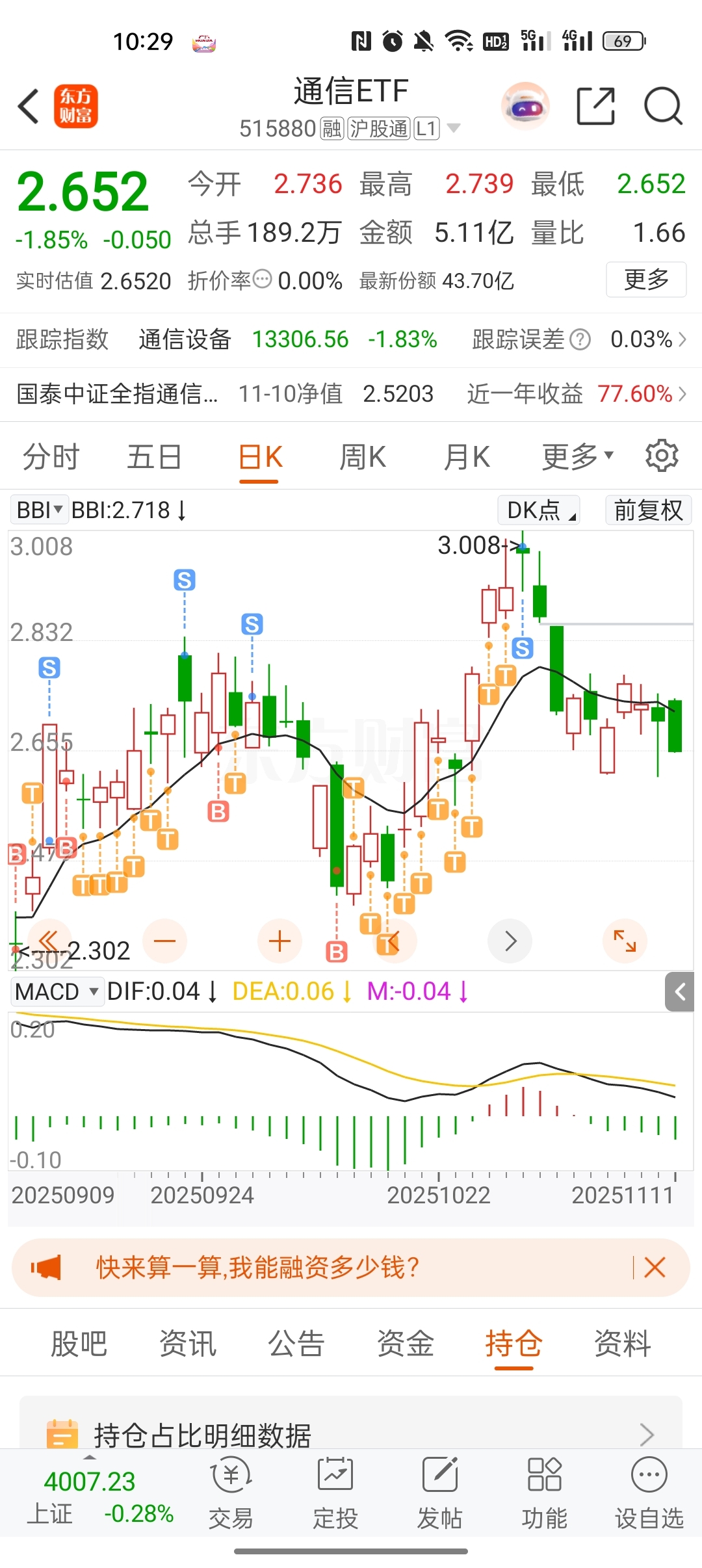 $通信ETF(SH515880)$ 还没有重新建仓,找机会建仓
