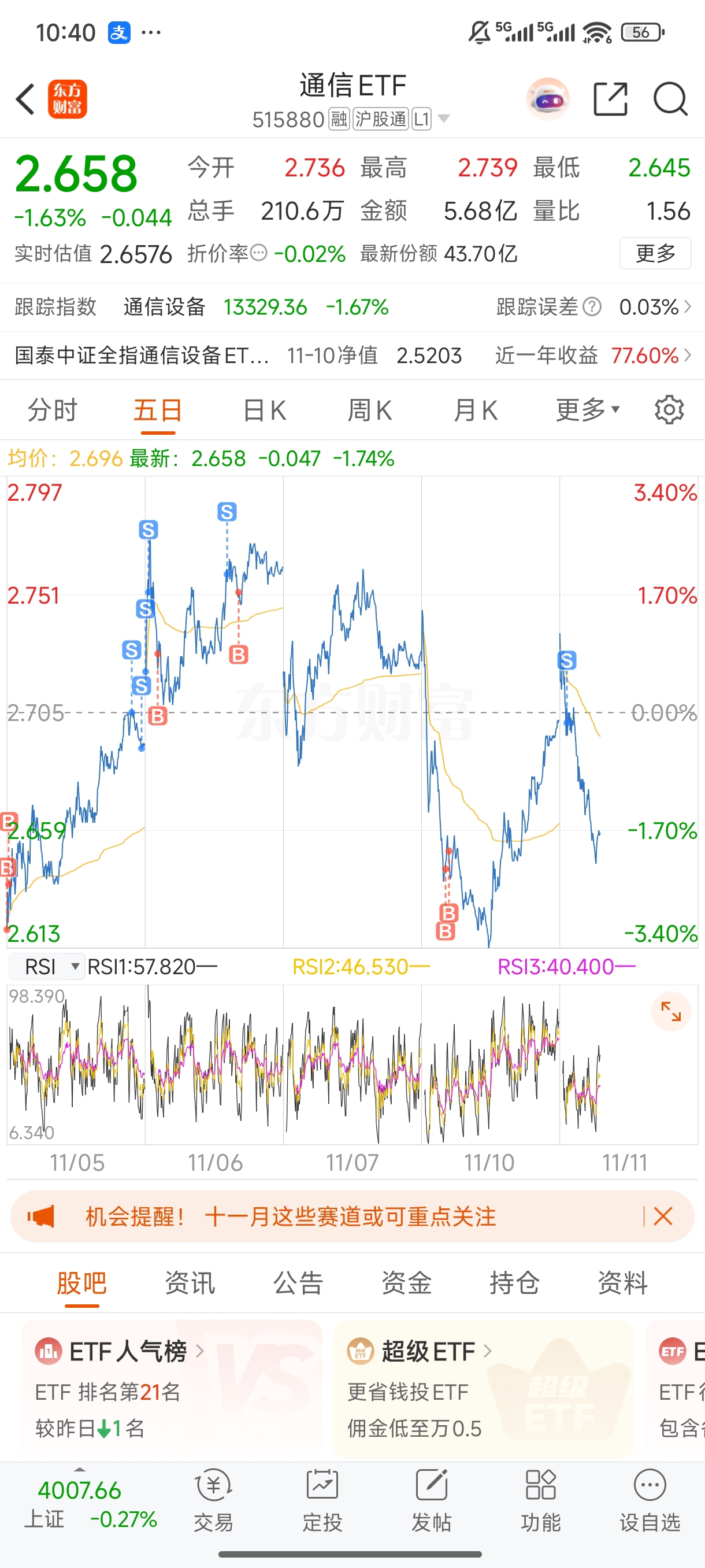 $通信ETF(SH515880)$ 没经历过一轮牛熊或者你对这个板块非常了解,普通人你根本拿不住的,就算他最终趋势向上你也未必能赚钱,还是割肉跑吧,去玩老登股