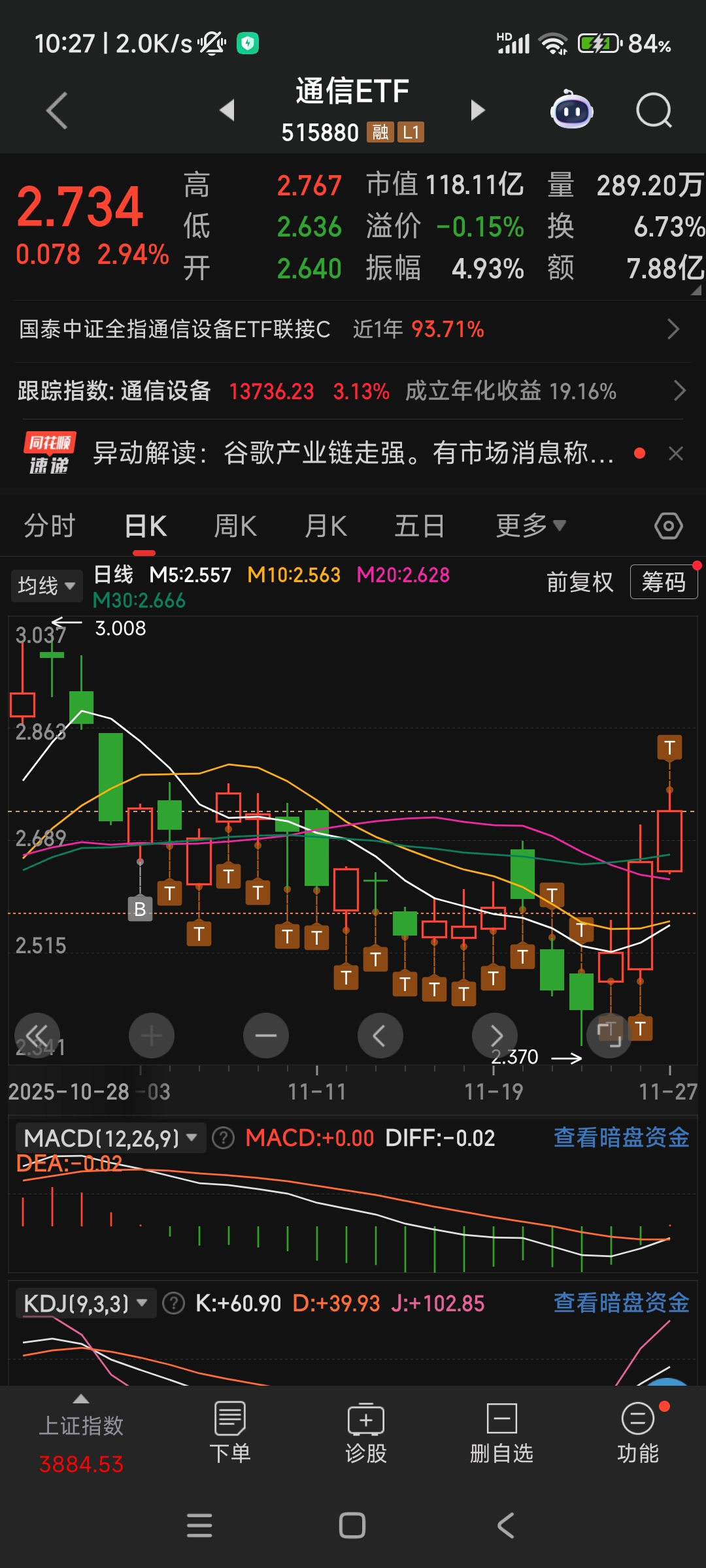 $通信ETF(SH515880)$ 每天t一下降点成本