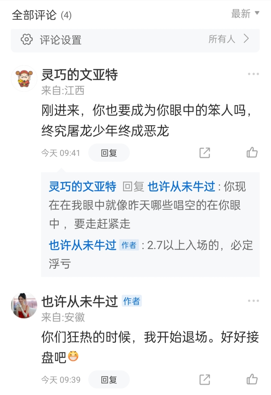 郑重声明:用户在财富号/股吧/博客等社区发表的所有信息(包括但不限于文字、视频、音频、数据及图表)仅代表个人观点,与本网站立场无关,不对您构成任何投资建议,据此操作风险自担。请勿相信代客理财、免费荐股和炒股培训等宣传内容,远离非法证券活动。请勿添加发言用户的手机号码、公众号、微博、微信及QQ等信息,谨防上当受骗!