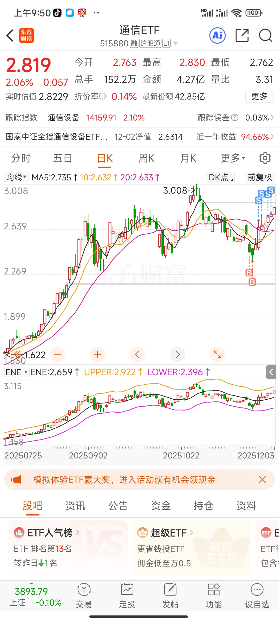 $通信ETF(SH515880)$ 涨了就拿不住了