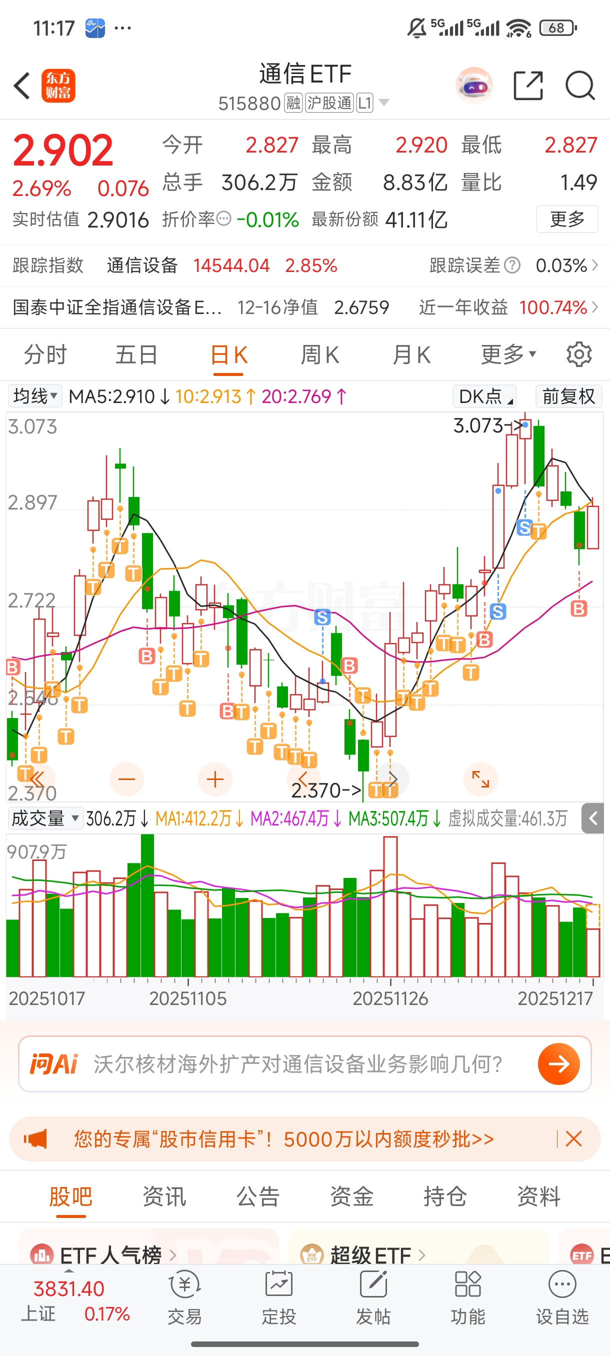 $通信ETF(SH515880)$ 继续躺平,这几天操作变少了,我感觉我进步了。