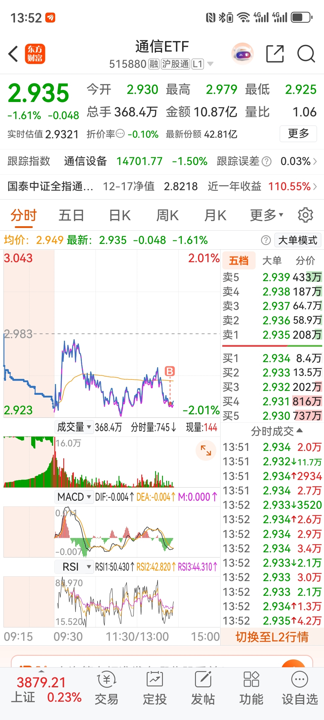 $通信ETF(SH515880)$ 我来了,兄弟们,我来这里要饭了,第一次买这个,明天出,希望给点面子