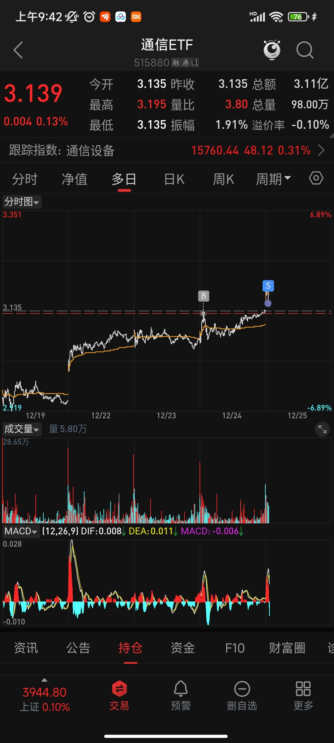 $通信ETF(SH515880)$ 高开就跑,没错
