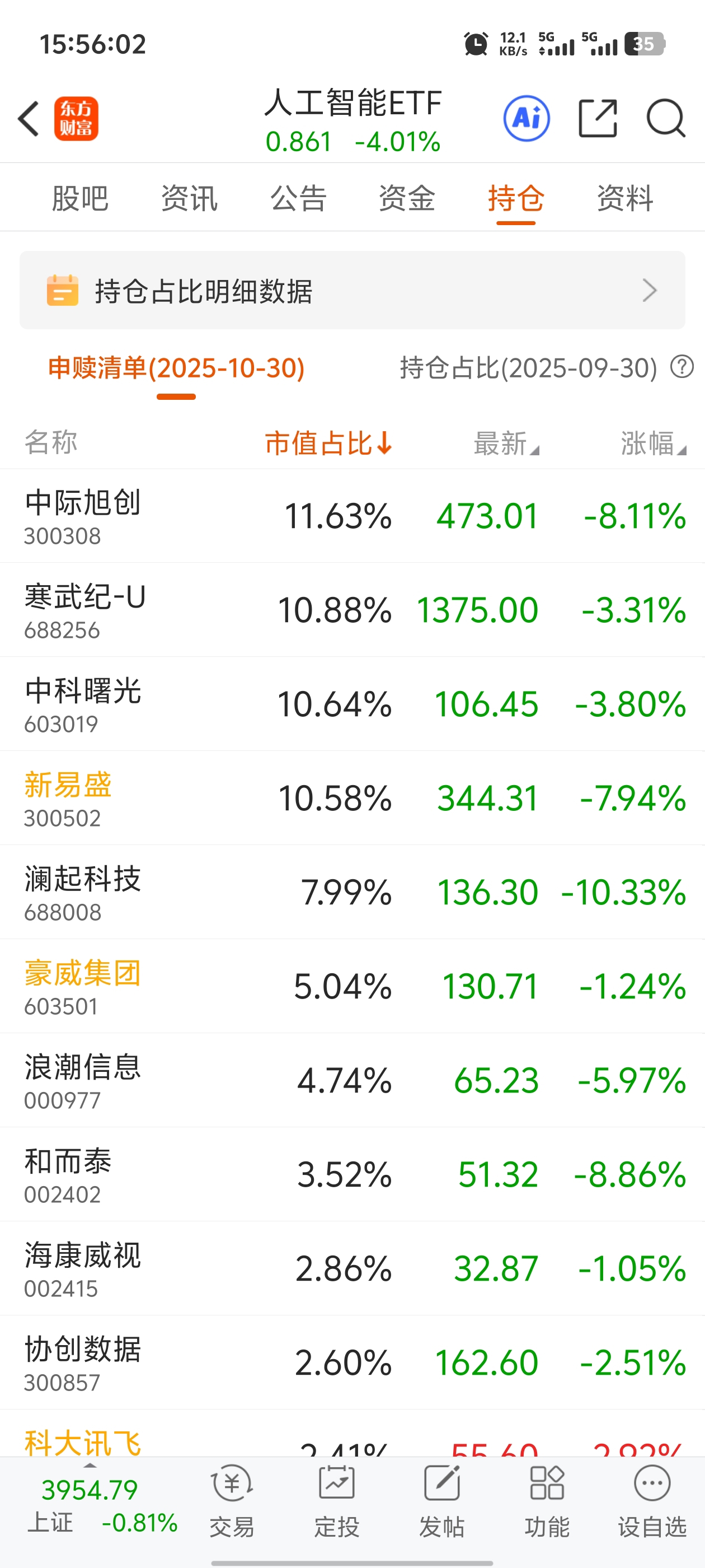 $人工智能ETF(SH515980)$ 持仓全是跳空下跌!