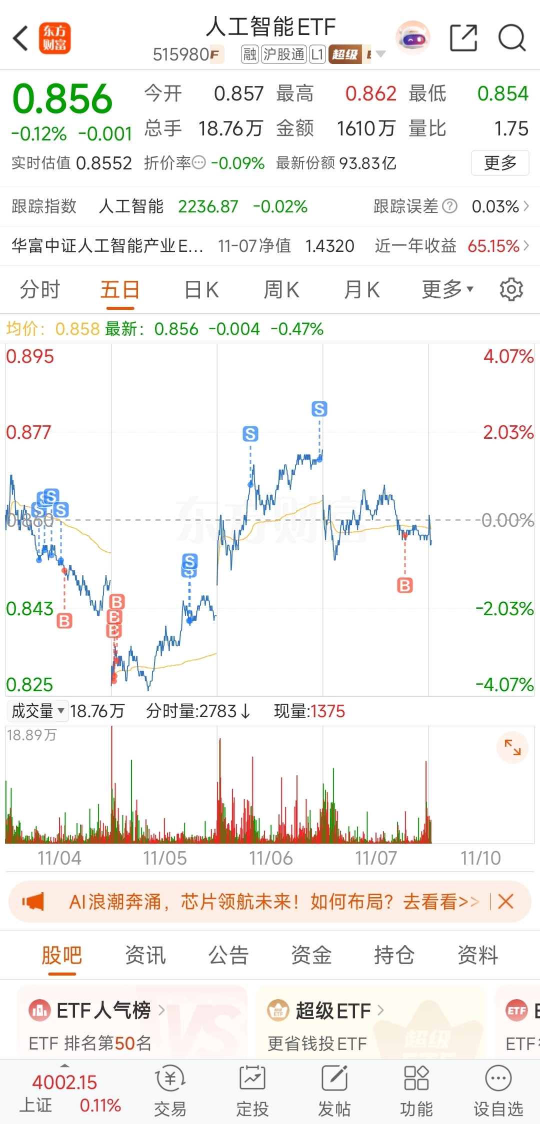 $人工智能ETF(SH515980)$ 一顿操作猛如虎,再看利润二百五,散伙不看了,长期持有吧