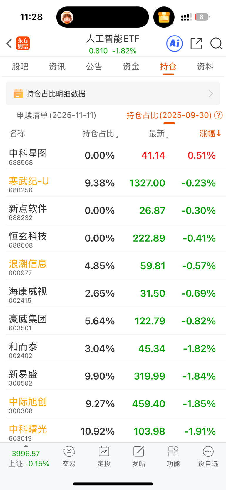 $人工智能ETF(SH515980)$ 懂了没?全绿!