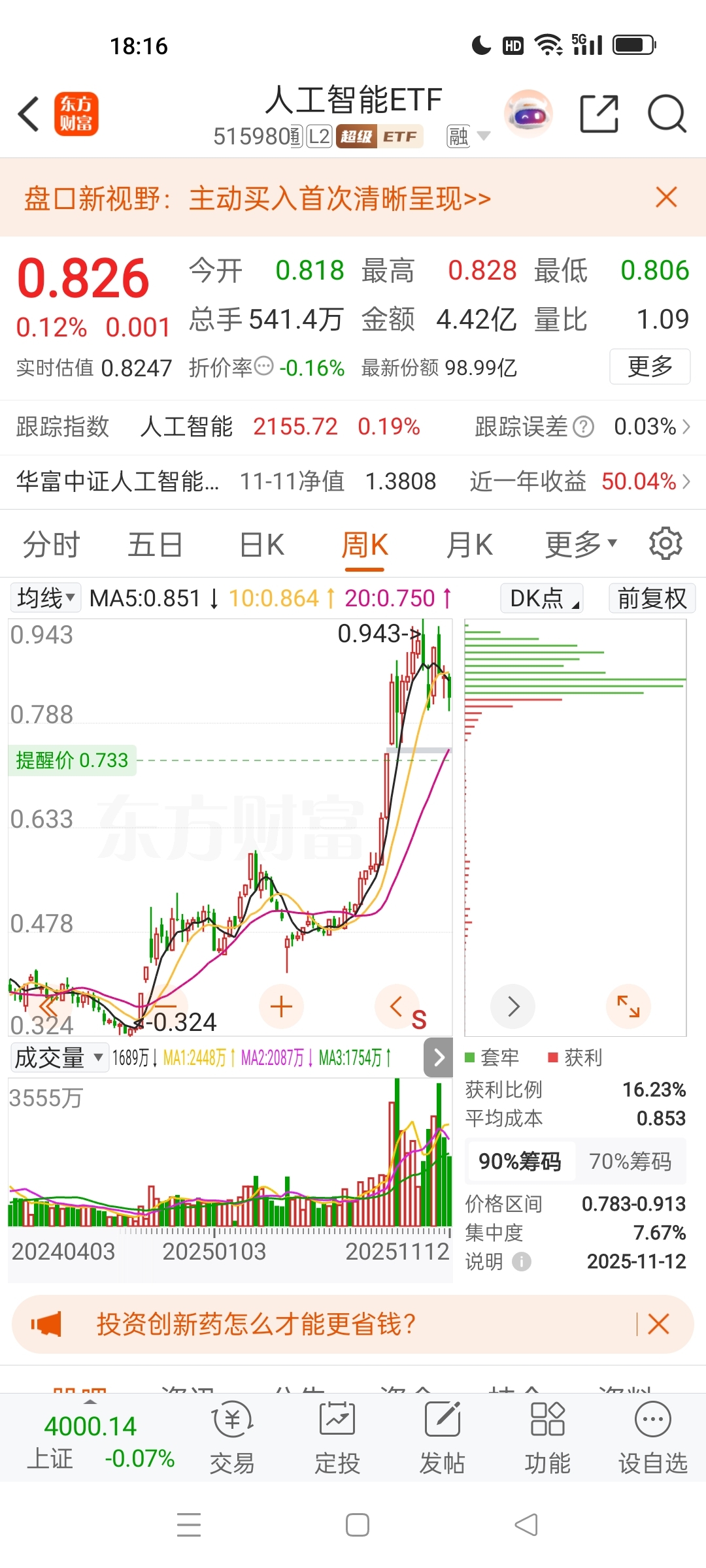 $人工智能ETF(SH515980)$ 哪位高手解释一下,现在这位置究竟是机会大,还是风险大?