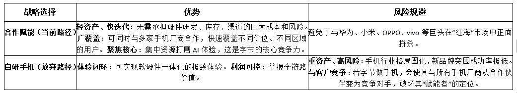 闪电战:通过软件合作,以最低成本、最快速度切入AI手机这一核心战场,避免重资产硬件的泥潭。