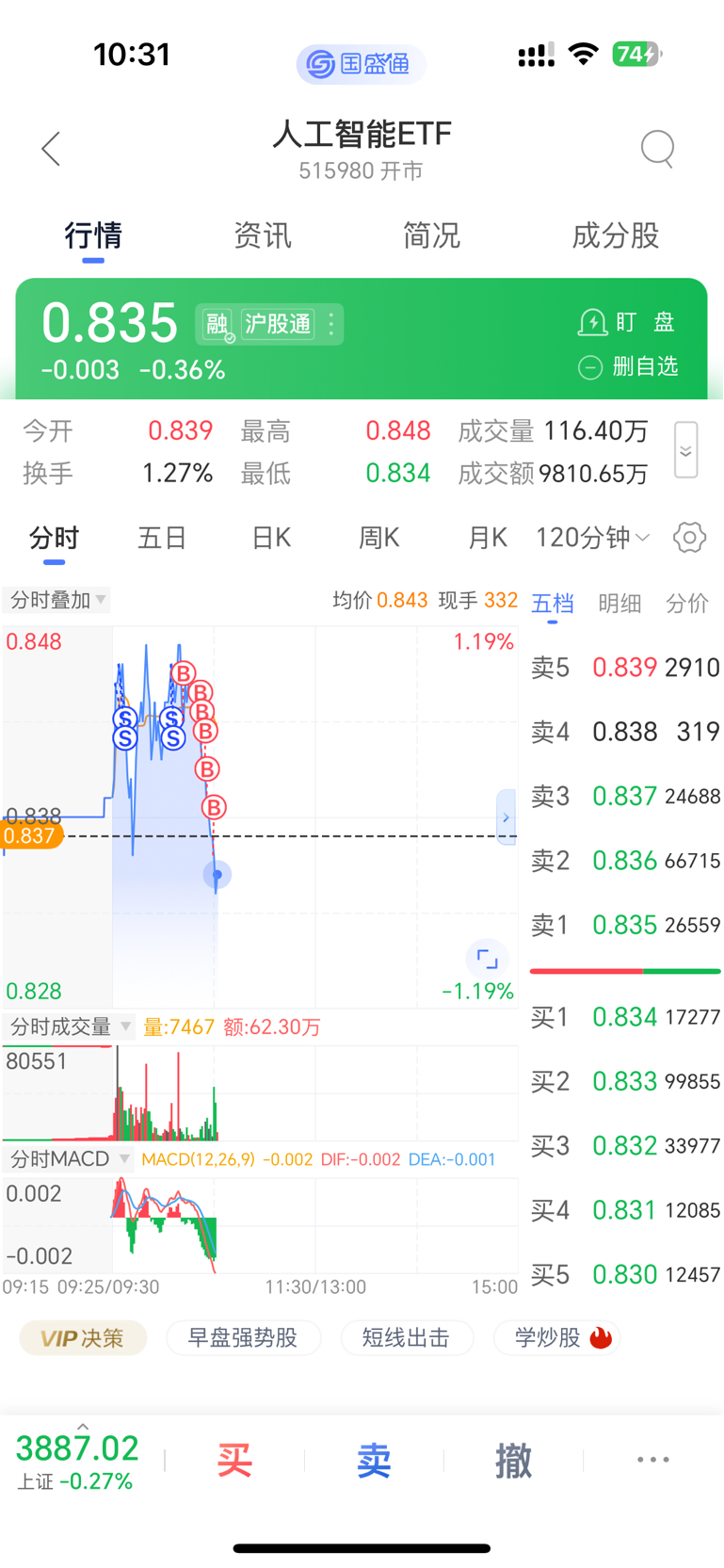 $人工智能ETF(SH515980)$ t好了 今天差价在 0.003 左右