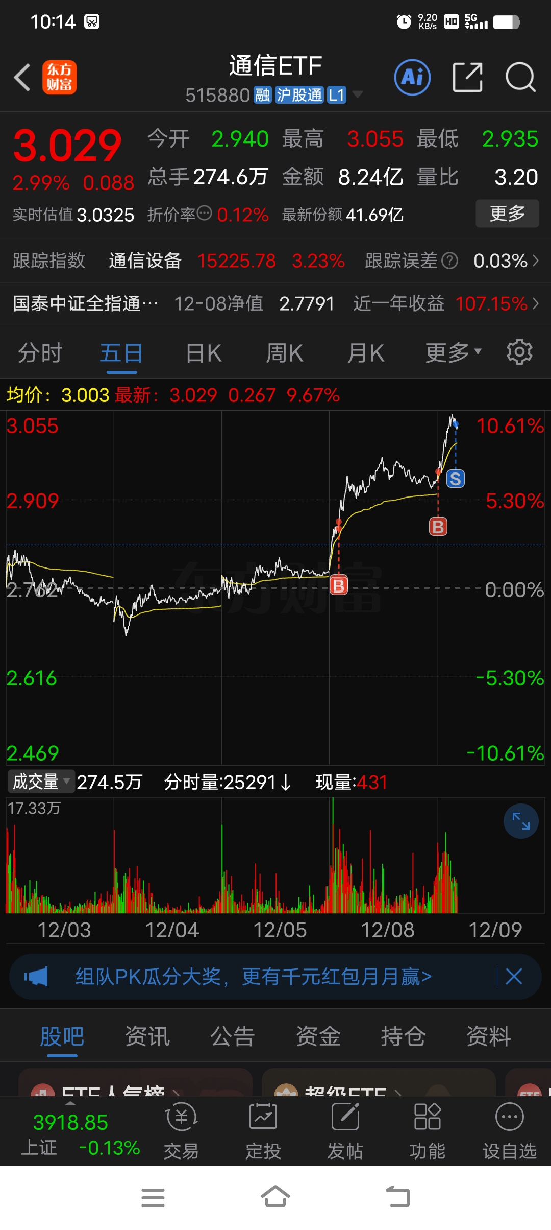 这个是昨天进入的,和这个etf一样操作,仍然按照我每天的习惯进行