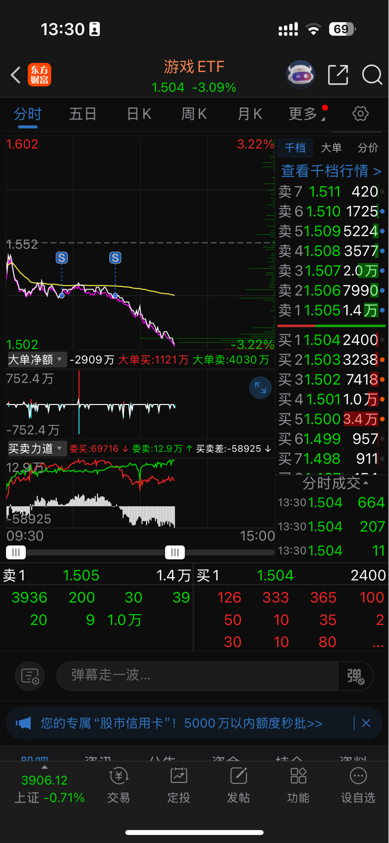 $游戏ETF(SH516010)$ 还好前跑了今天