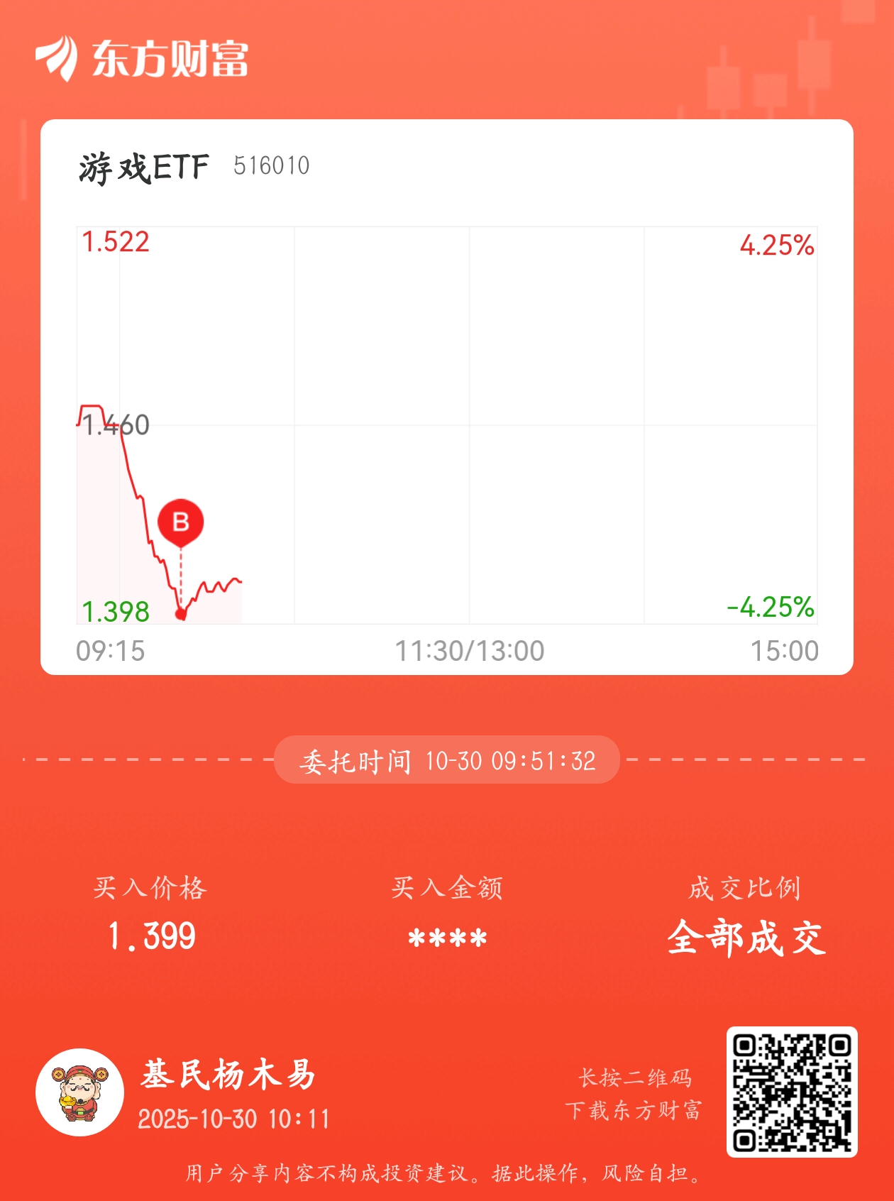 委托标的:516010买卖方向:买入笔记:接一点,起来了再T出去