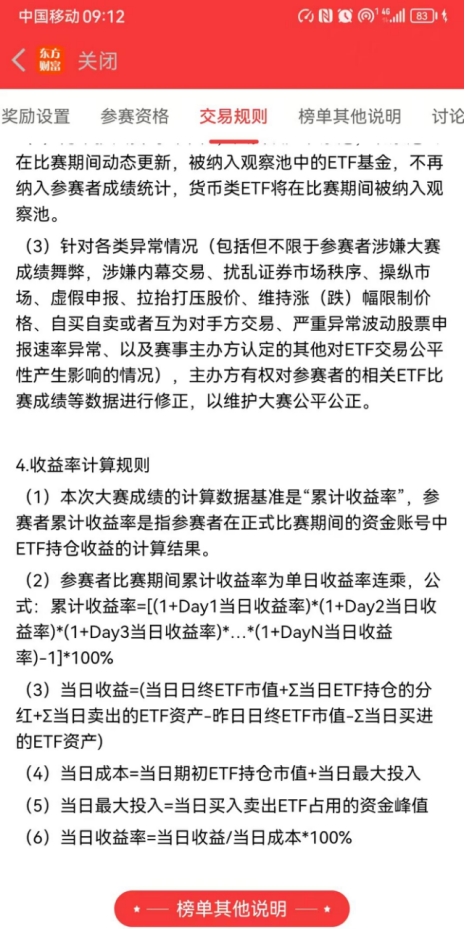 对于本次东财2025ETF实盘大赛的规则我主要是注意以下三点: