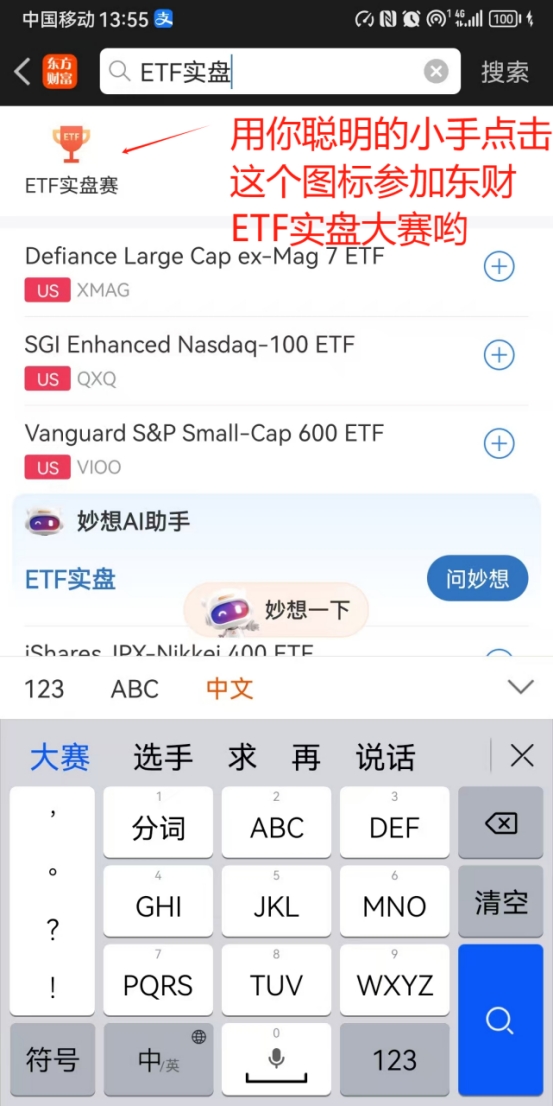 分享了那么多,相信小伙伴们也非常想一起来参与东财ETF实盘大赛了吧!参与途径也是很简单的:在东方财富APP搜索“ETF实盘赛”,点击相应的图标就可以进入大赛页面,选择参加就可以啦!