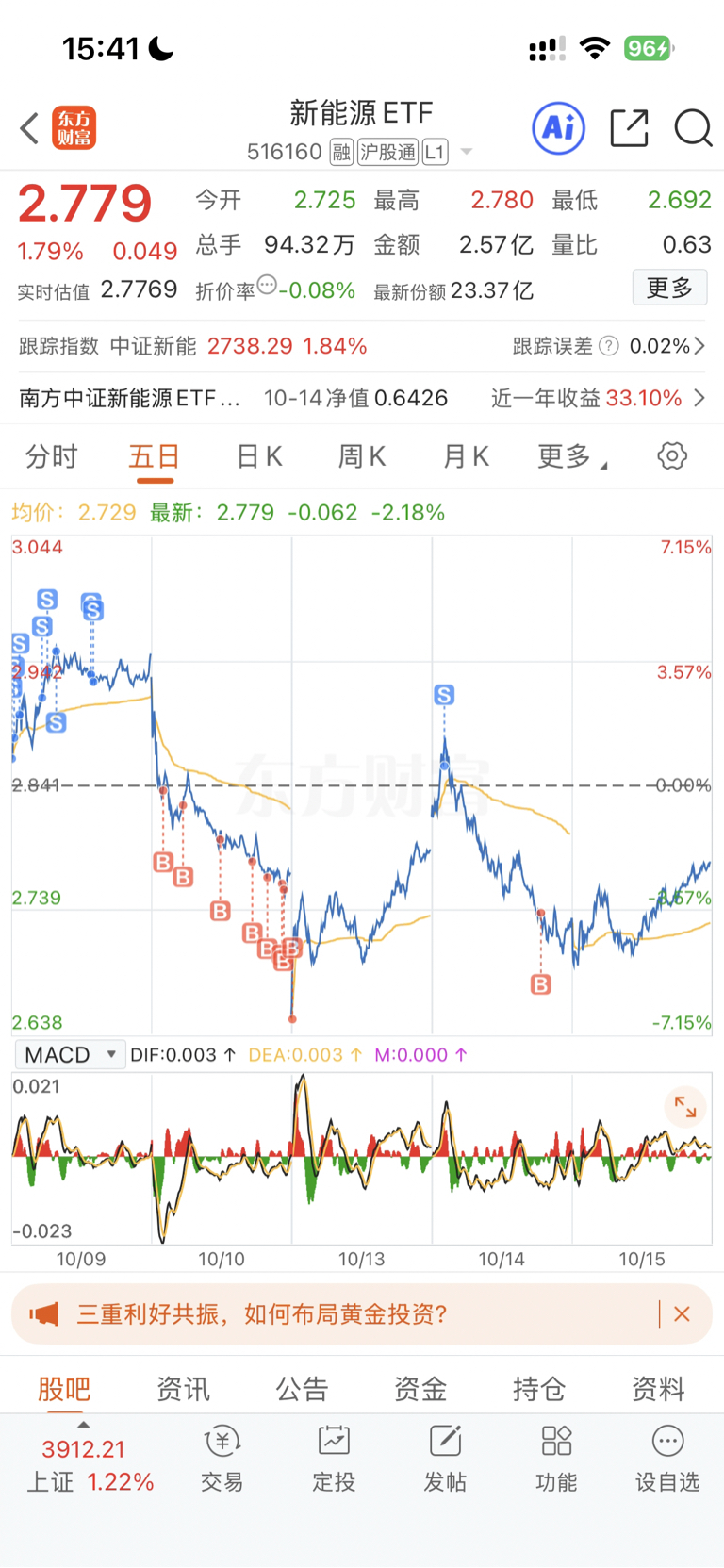 $新能源ETF(SH516160)$ 不操作了,没意思