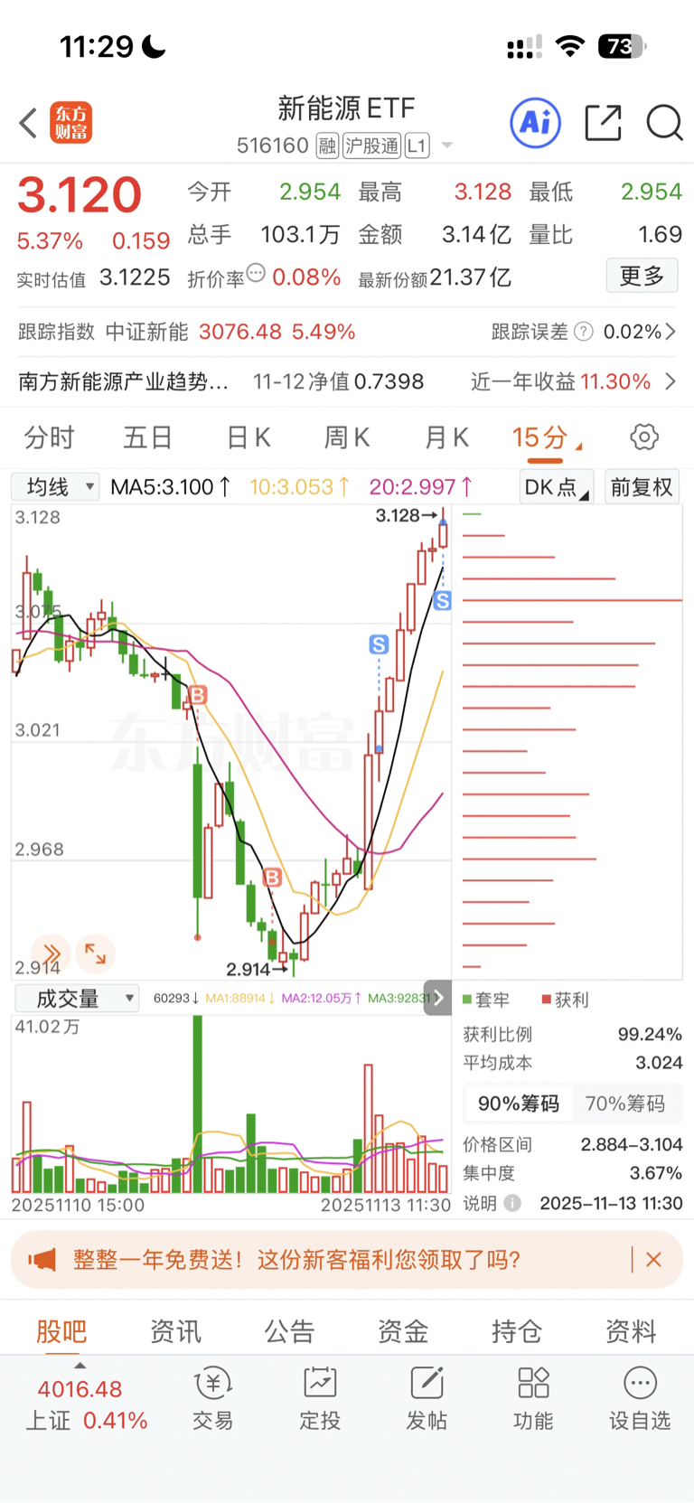$新能源ETF(SH516160)$ 主力我加仓的筹码卖了,等你给我抬轿子