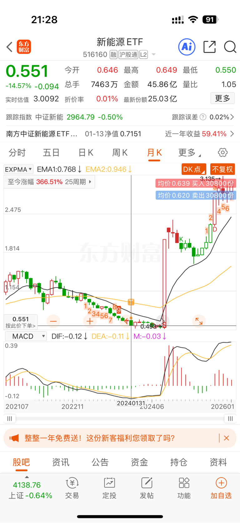 $新能源ETF(SH516160)$ 原来都 5倍了。。。。