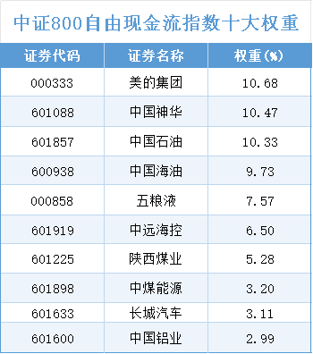 800现金流关联个股:中国神华、中国石油、美的集团、中国海油、五粮液、中远海控、陕西煤业、中煤能源、长城汽车、中国铝业