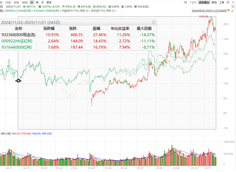 当前A股市场呈现典型的低开震荡特征,上证指数在3200-3400点区间反复拉锯,市场情绪在谨慎与期待间摇摆。这种行情背景下,高股息资产凭借其高防御性特质,正成为资金避风港的新选择。现金流ETF800(516460)作为跟踪现金流指数的被动型产品,其配置价值在存量博弈格局下愈发凸显。