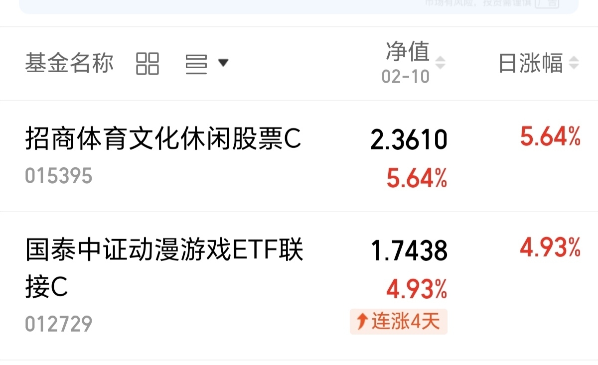 $招商体育文化休闲股票C$ 昨日涨幅5.64%