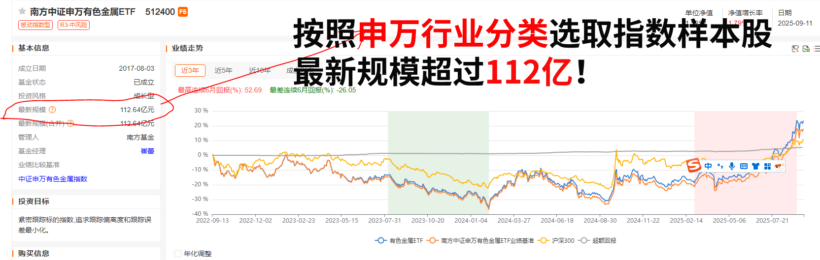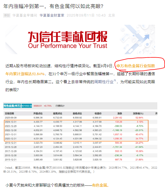 大家如果认可申万一级行业的分类,可以看下这个按照申万行业分类,选取有色金属及非金属材料行业的上市公司证券作为待选样本股的有色金属ETF!