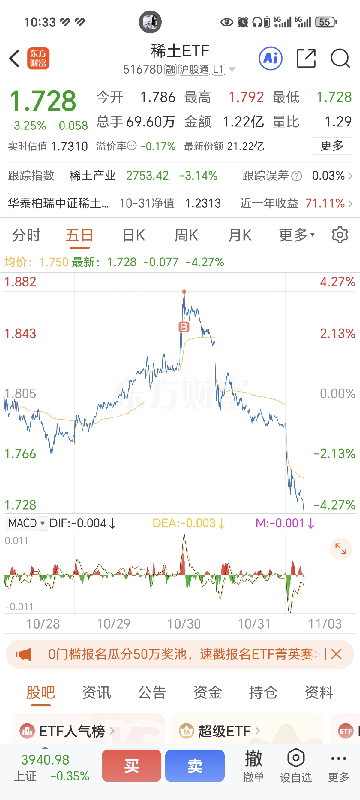 $稀土ETF(SH516780)$ 手贱啊