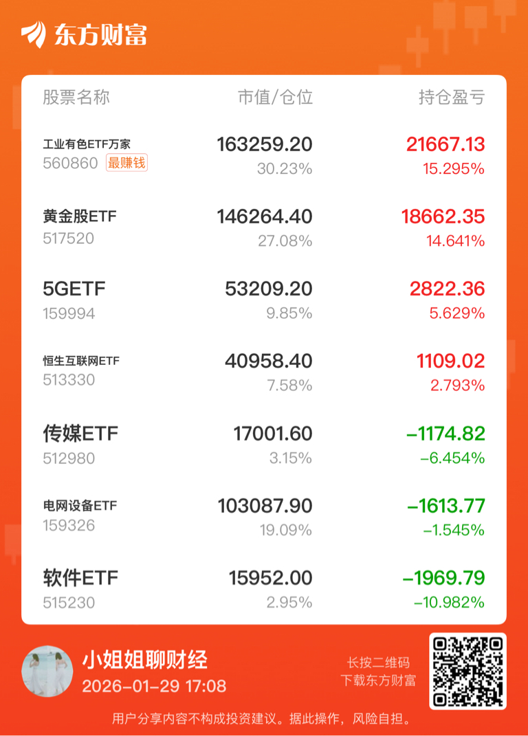 $黄金股ETF(SH517520)$ 今天开盘黄金股和有色金属继续暴涨,开盘账户赚了两万多,然后就被压盘资金快速砸下来了,经历了一场盘中富贵,不过我觉得黄金还有机会,所以今天没有动。