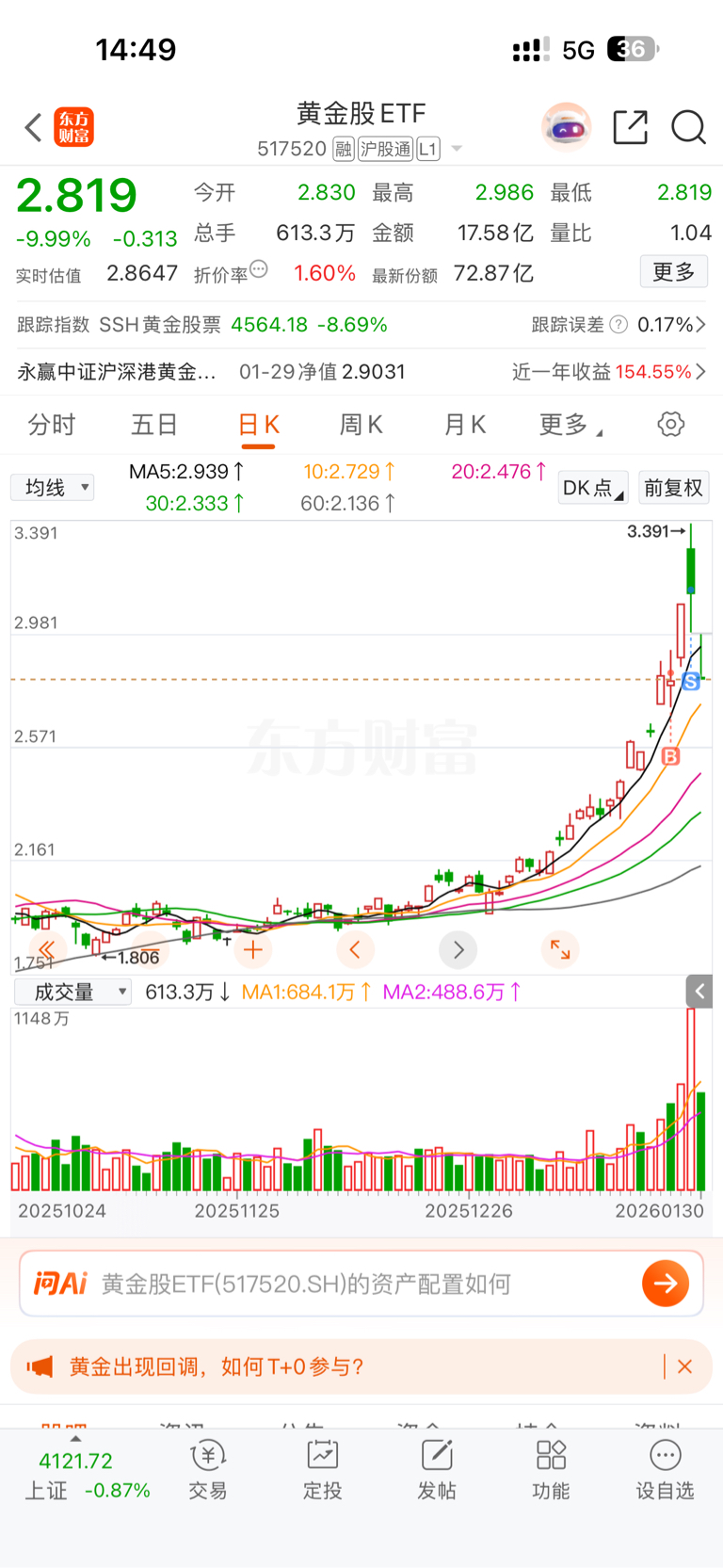 $黄金股ETF(SH517520)$