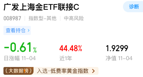 我加仓$广发上海金ETF联接C(OTCFUND|008987)$1000元!黄金9999最近一直在900元以上反复波动,之前那么快涨到千元以上确实有点猛,但这波调整下来短线风险就得到了释放,这里一直横盘说明这个价格是合理的,后续温和上涨就是正常趋势,趁近期调整我低吸加仓。