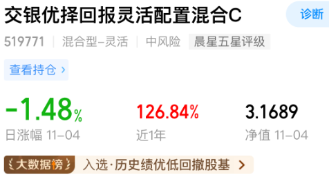 我加仓$交银优择回报灵活配置混合C(OTCFUND|519771)$1000元,优择今年以来业绩爆发力很强,近半年就涨超112%!A类和C类多个阶段同类排名首一首二,看好AI科技定投这只就对了,趁这几天连续出现调整,我继续加仓一笔。