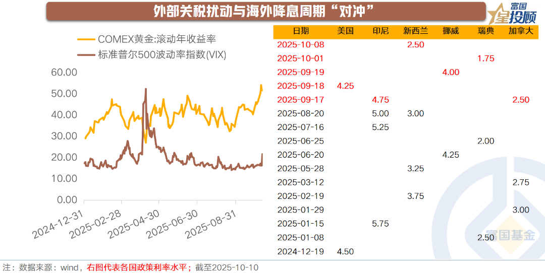 从2018年以来三次关税风波经验来看,资本市场一般会先经历一次性的下跌冲击,再经历事件缓和带来的“冲回”和政策升温带来的“对冲”。若仅以一次性下跌冲击来看,颇有一些“狼来了”喊多了的味道。近期美国政府停摆+关税升级,VIX站上20,但波动率放大幅度不及4月初。另一方面,9月以来,包括美国、瑞典、加拿大等一系列西方国家降息,会使得关税冲击的影响被进一步对冲。