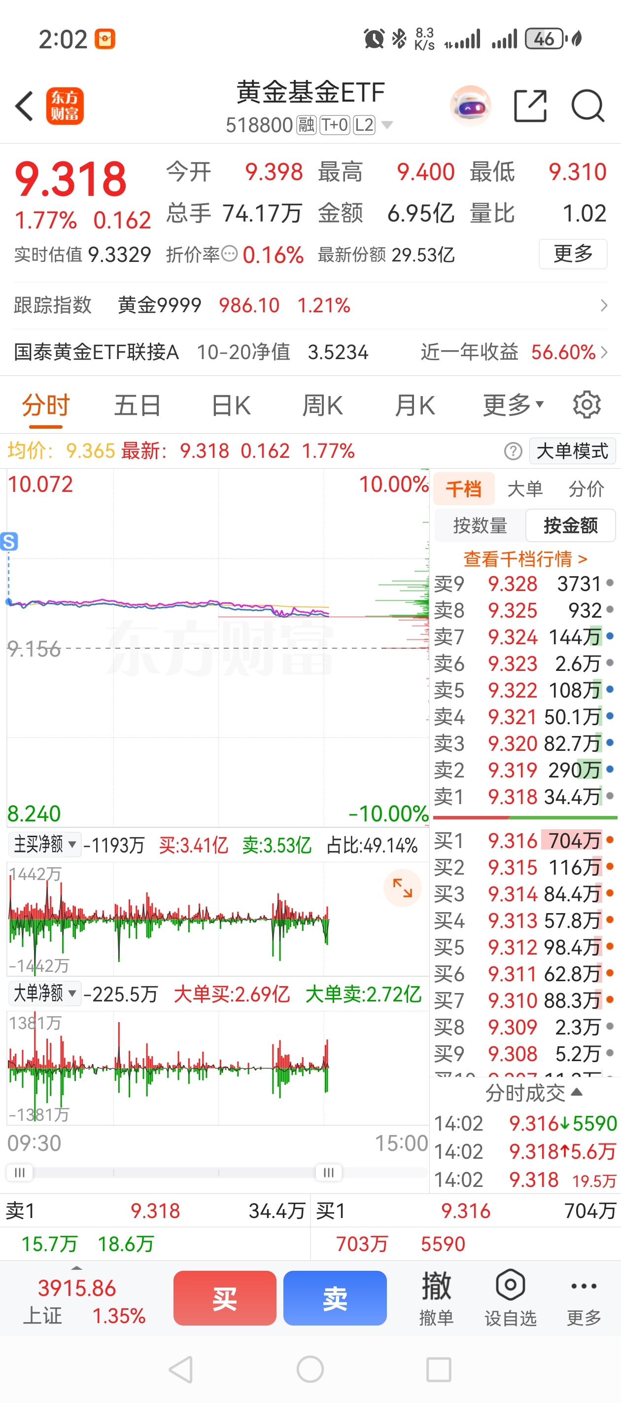 $黄金基金ETF(SH518800)$ 开盘就跑了