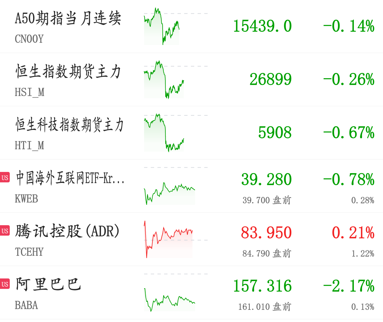 期指震荡,中概股下跌: