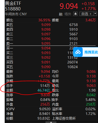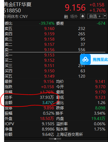 华安黄金514万手交易量,华夏黄金交易量不到十分之一!