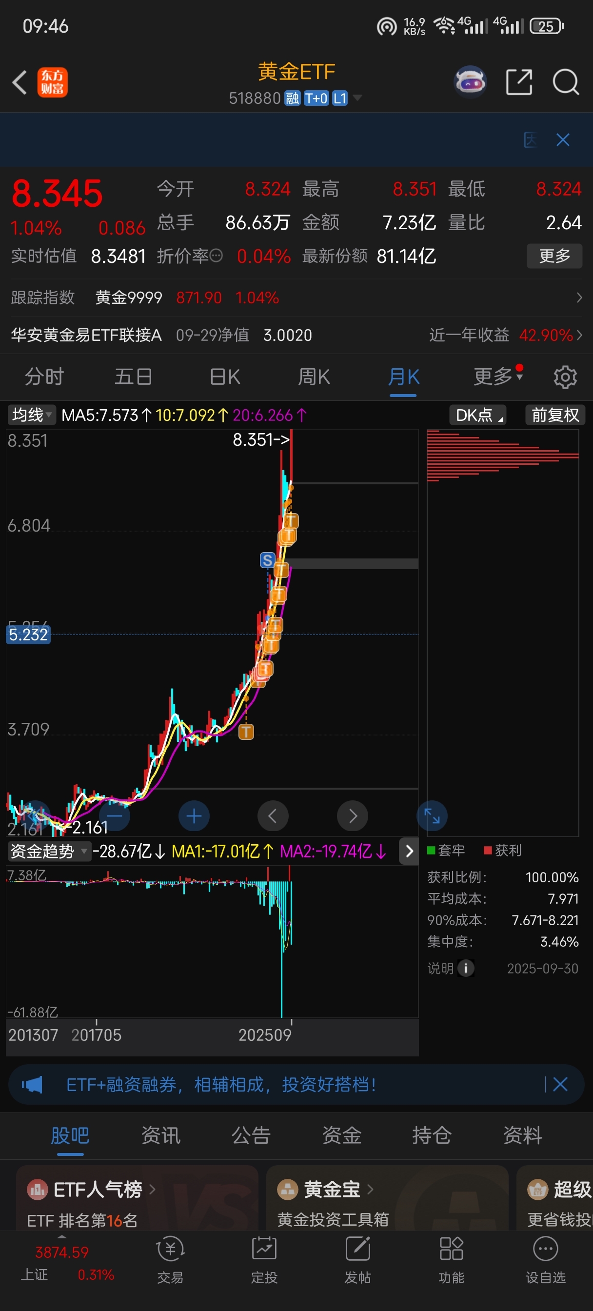 $黄金ETF(SH518880)$ 我的成本线在这里,你们呢