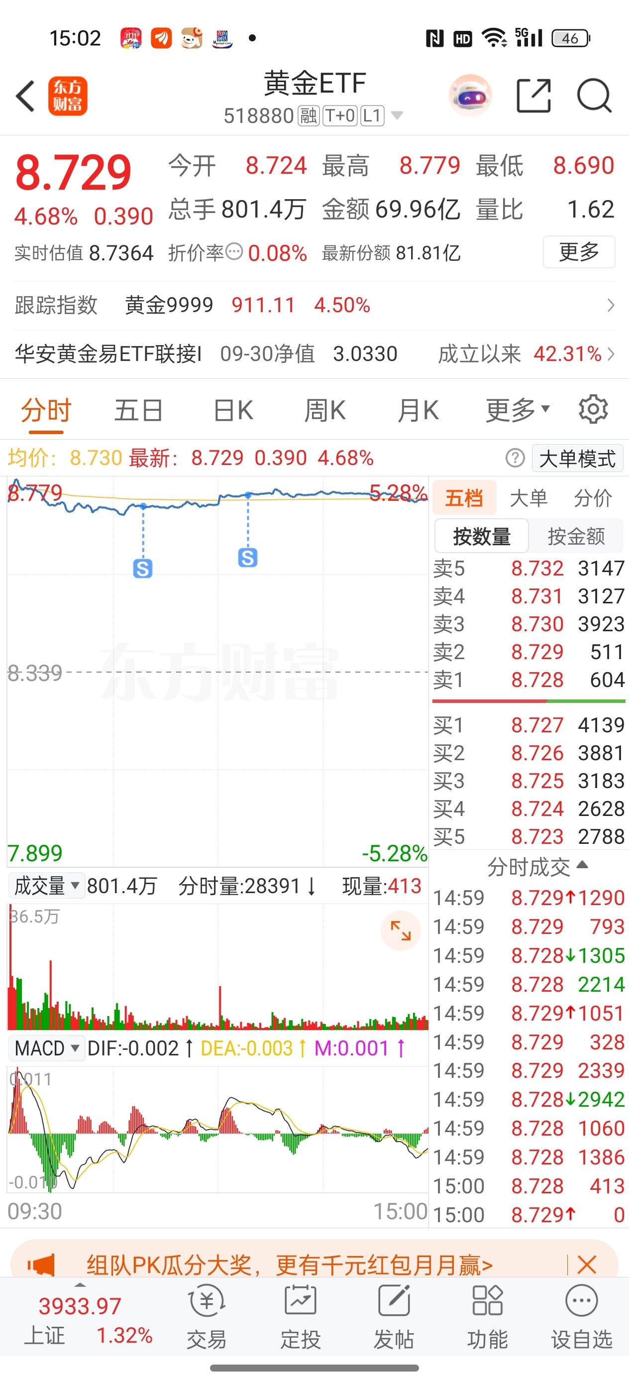 $黄金ETF(SH518880)$ 保险点一半止盈,吃到嘴里的肉咽到肚子里才安稳
