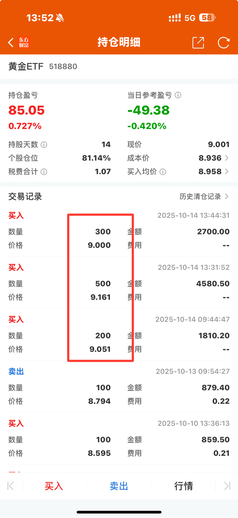 $黄金ETF(SH518880)$ 涨到9.16我就卖
