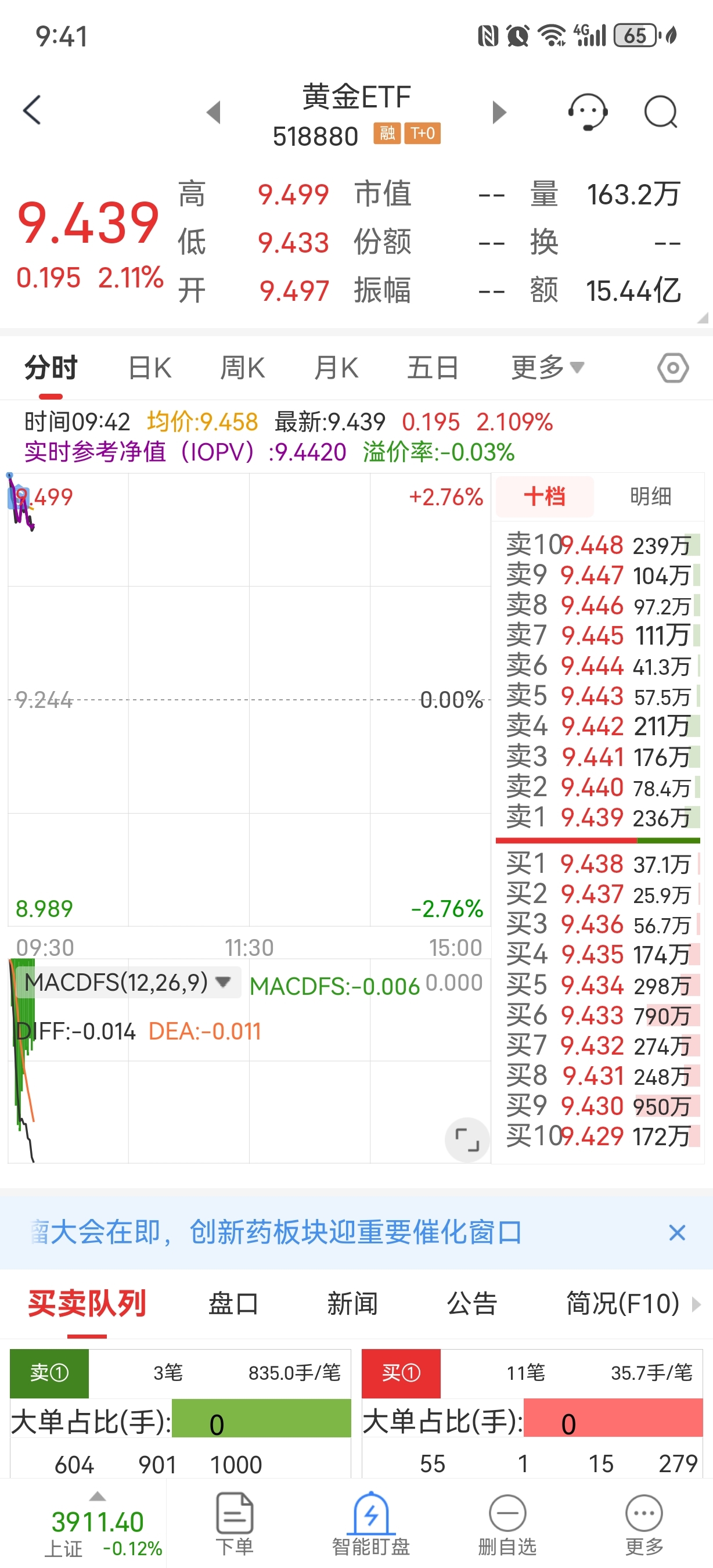 $黄金ETF(SH518880)$ 今天撤的的及时