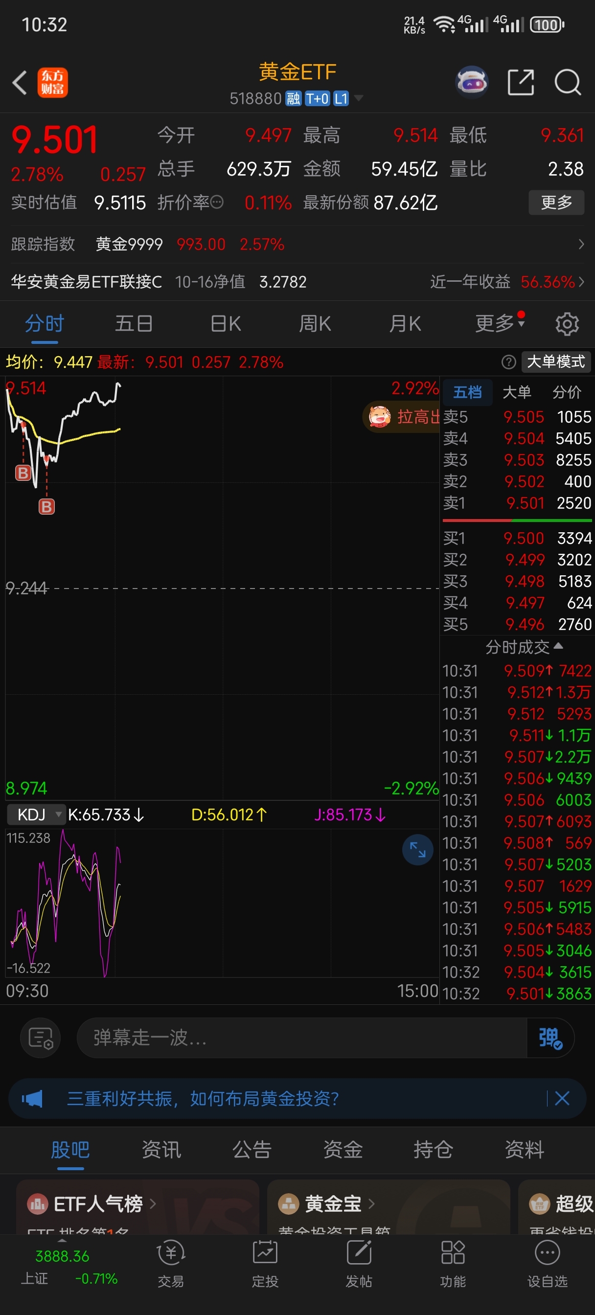 $黄金ETF(SH518880)$ 别人恐惧我贪婪,九成仓了家人们