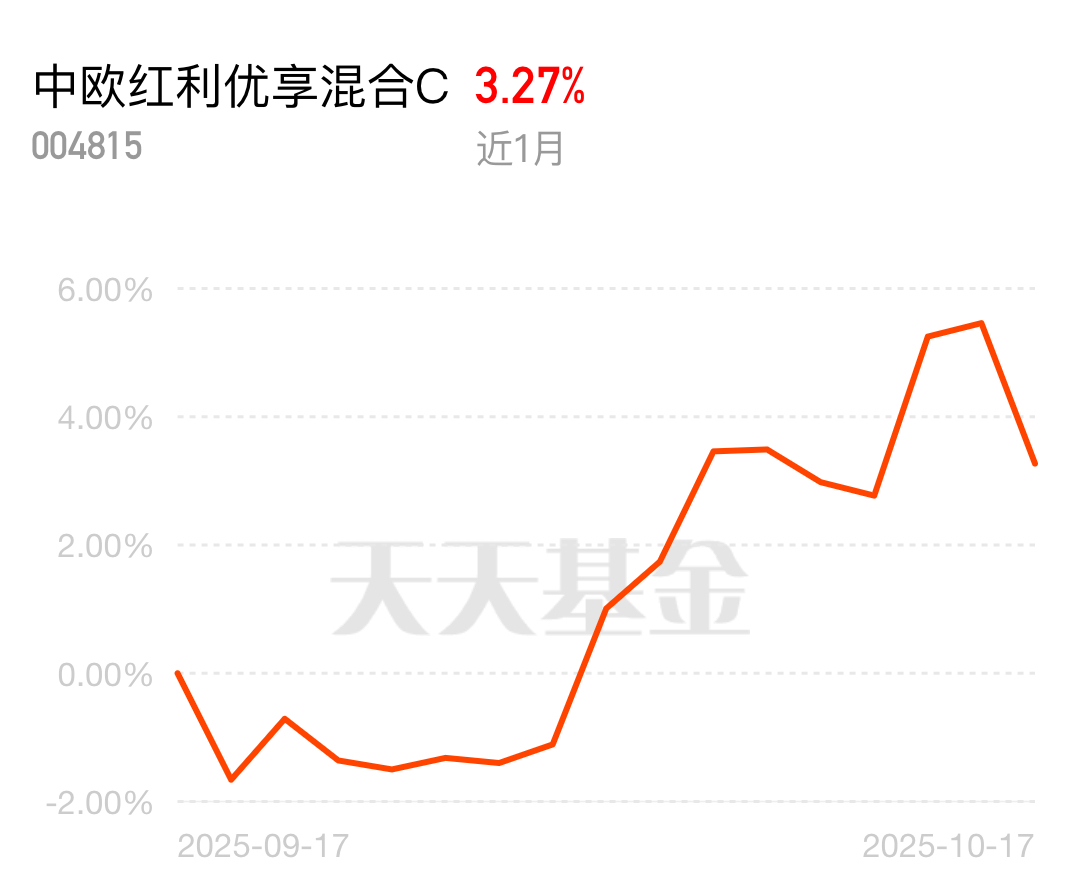 10 月市场没少让人操心,外围不确定多,黄金波动要调整,A 股还没明确主线,想投点闲钱都犯难。还好红利板块强势,国家队买着,比科技基金涨得多!中欧红利优享 C 靠谱,蓝小康稀缺,红包划算,每天买点加仓,心里踏实!$中欧红利优享混合C$