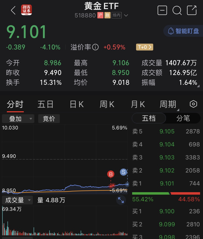 $黄金ETF(SH518880)$ 来打野的,9.071建仓,尾盘走一半留一半。