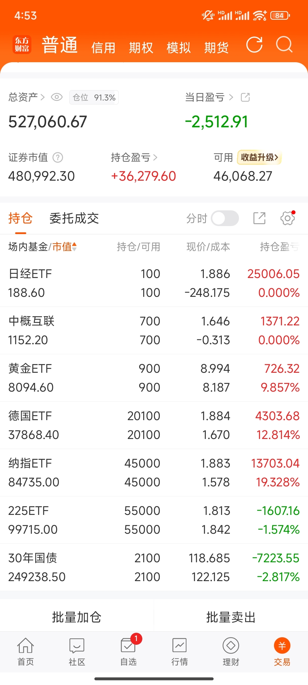 $黄金ETF(SH518880)$ 定投第188天,买入黄金100股,今日盈亏-2512,总盈亏+36279。#炒股日记# #复盘记录# #实盘记录#