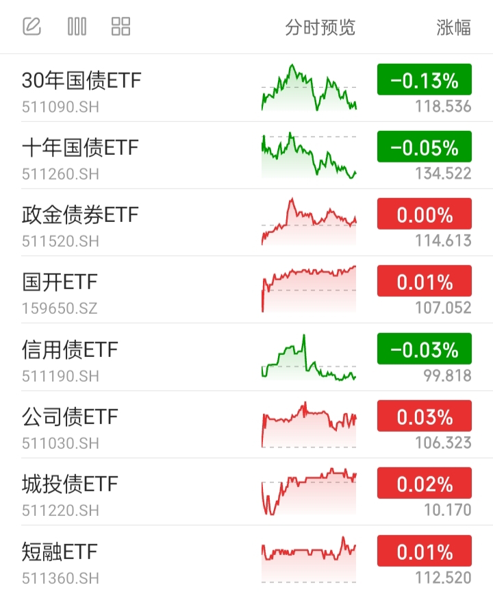 信用债ETF、公司债ETF、城投债ETF,代表信用债基。1跌2涨