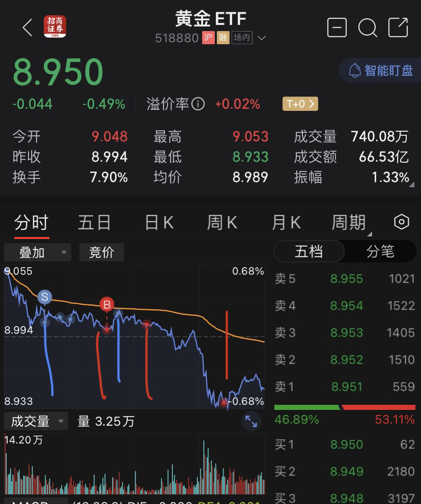 $黄金ETF(SH518880)$ 做做T,因为有原始仓位,地位加了仓,今天显示单股不赚不亏。