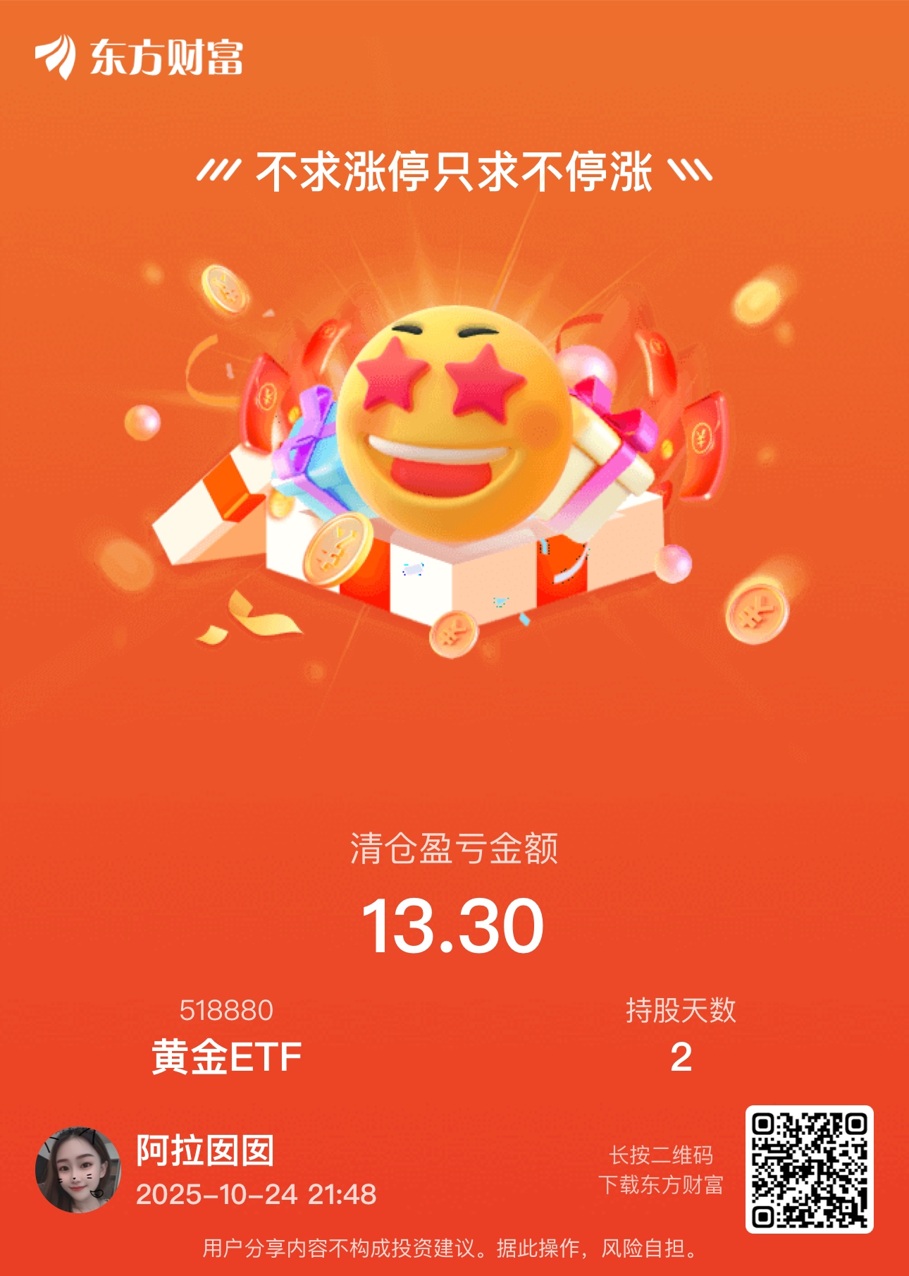 $黄金ETF(SH518880)$ 赚了一杯奶茶钱