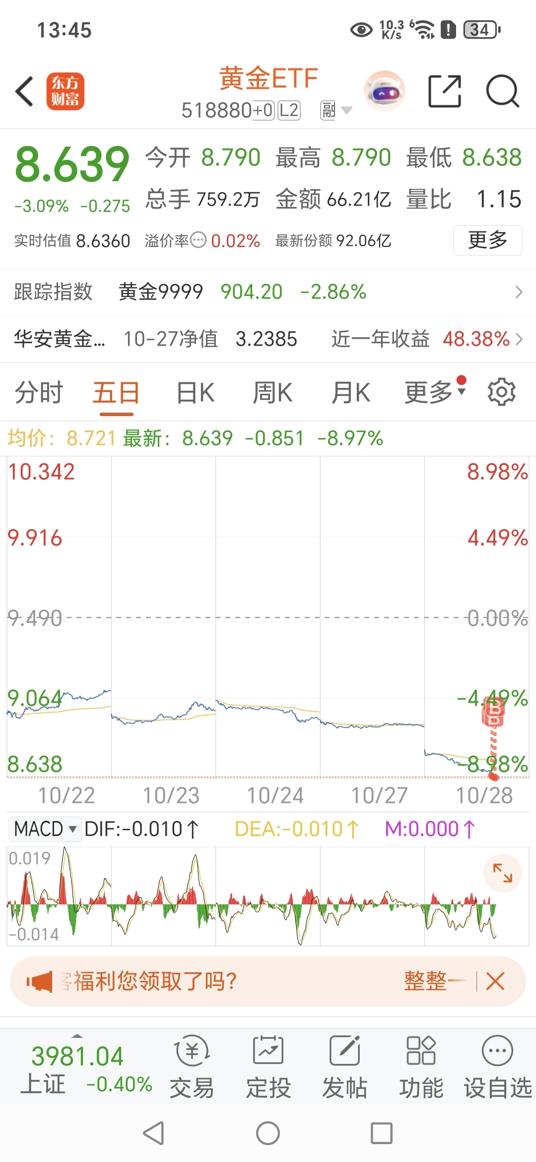 $黄金ETF(SH518880)$ 这是底还是半山腰??
