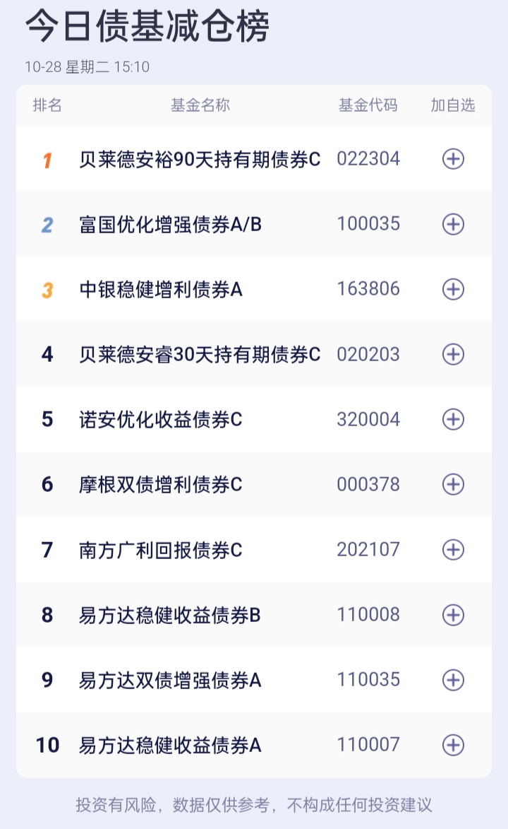 八、债券基金加、减仓榜(截止到15:00收盘)