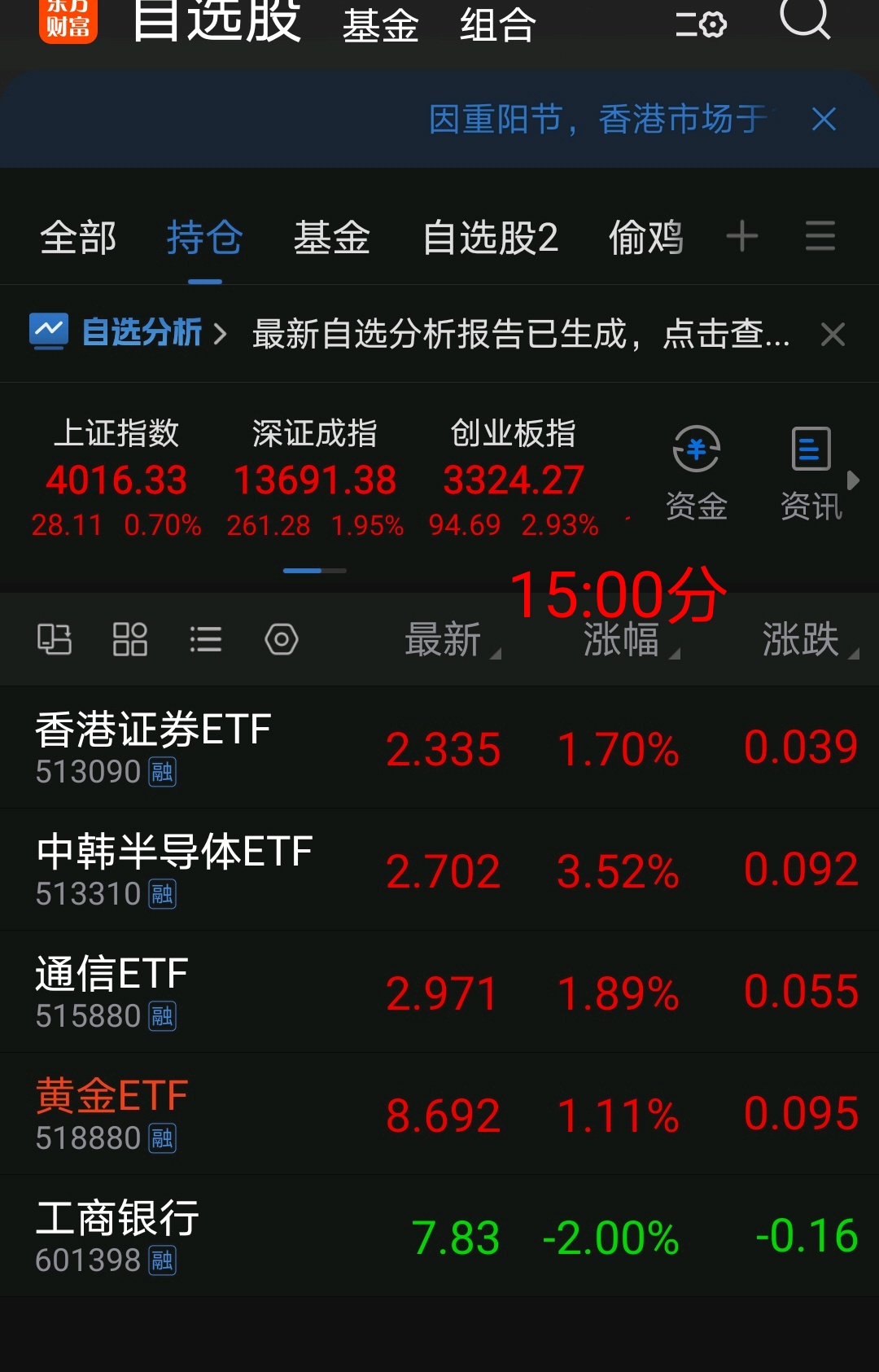 $黄金ETF(SH518880)$ $恒生科技ETF(SZ159740)$ $香港证券ETF(SH513090)$