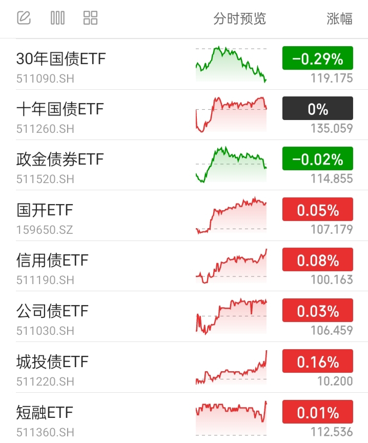 信用债ETF、公司债ETF、城投债ETF,代表信用债基。全部上涨
